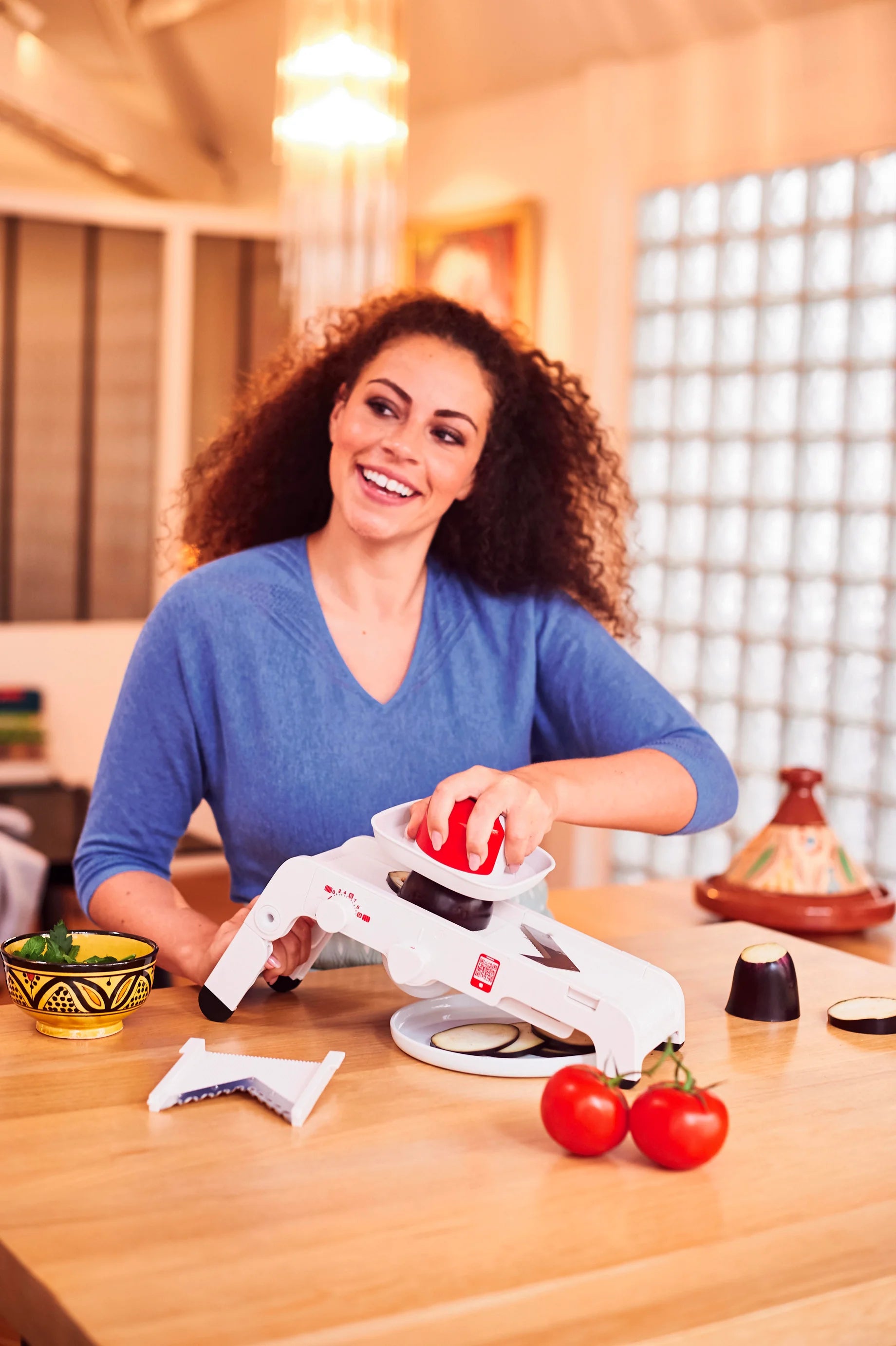 A Mandolin Szeletelő vagy Mandolin Séf segítségével gyümölcsöket és zöldségeket biztonságosan, könnyedén és gyorsan lehet felszeletelni, pálca, kocka vagy akár rombusz és rács alakban is. 2 vágóbetét és 2 julienne szélesség - engedd szabadjára a kreativitásodat.
