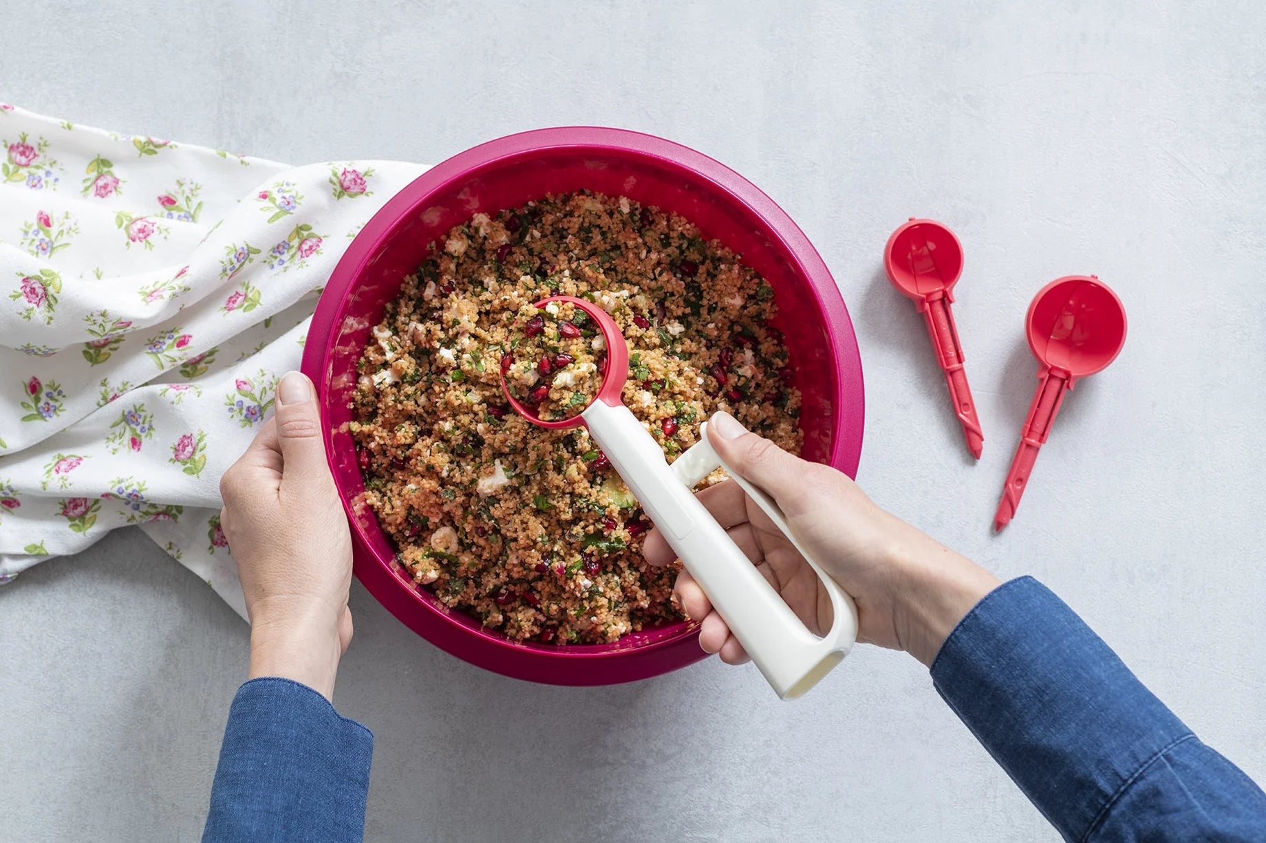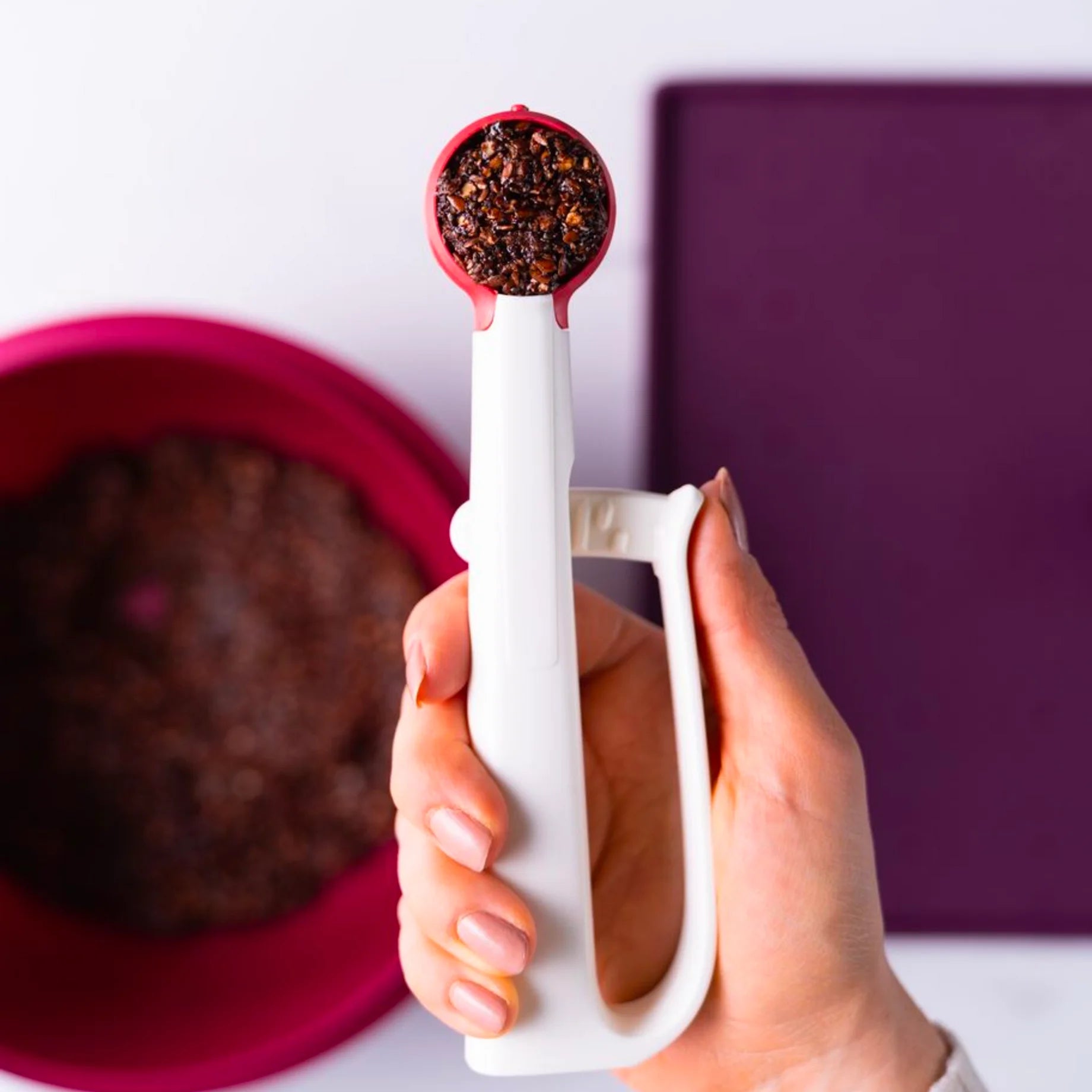 - Egy nyél mindenhez: Sok helyet takarít meg a hagyományos adagolókanálhoz képest.