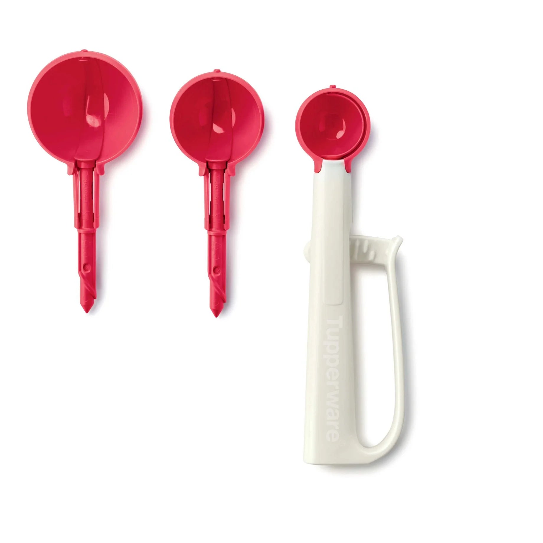 A Multi Adagolókanál egy 14,8 cm x 7 cm-es nyélből és 3 különböző méretű adagolókanálból áll: