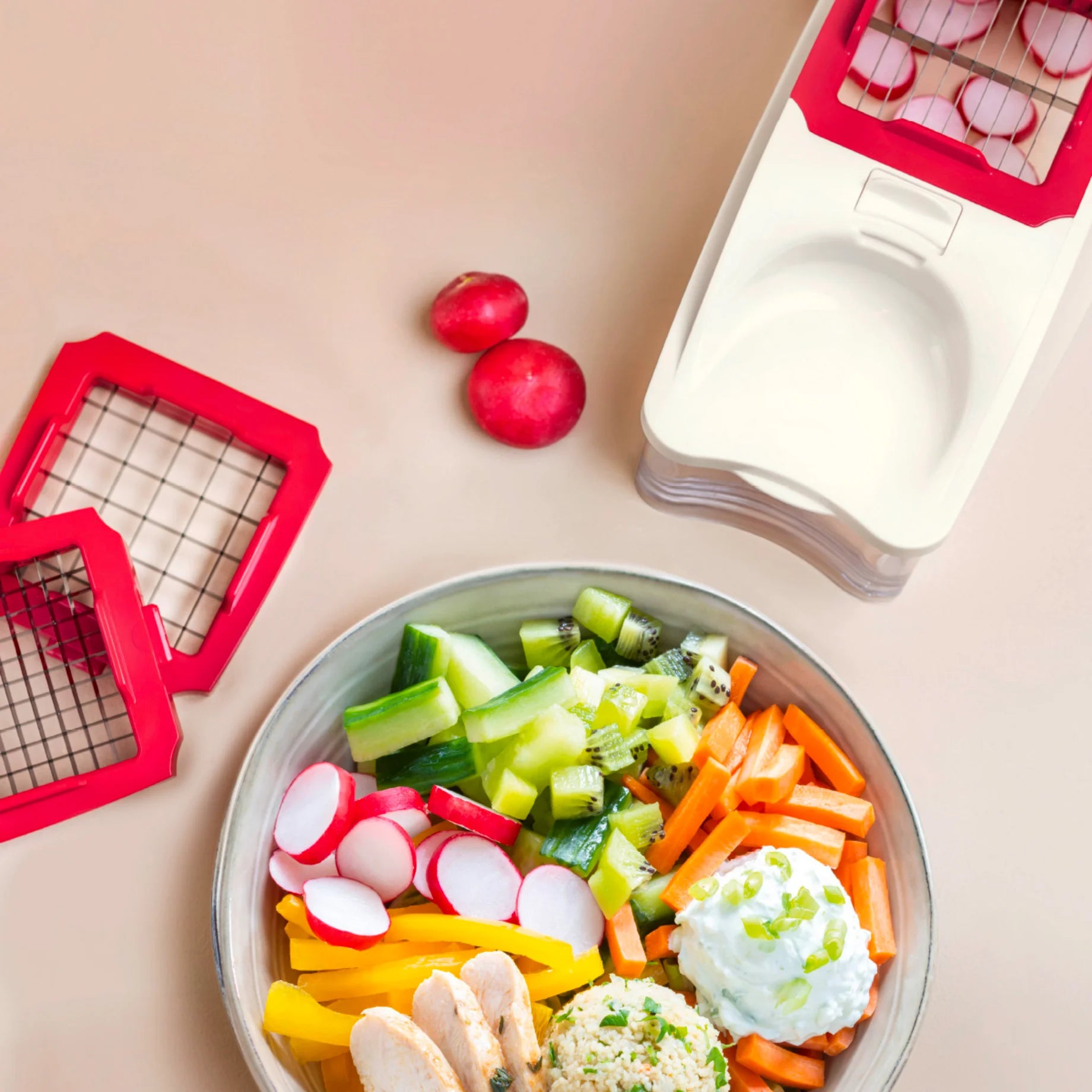 Egy sokoldalú konyhai eszköz szuperéles élekkel, amikkel apríthatsz, kockázhatsz és szeletelhetsz másodpercek alatt.