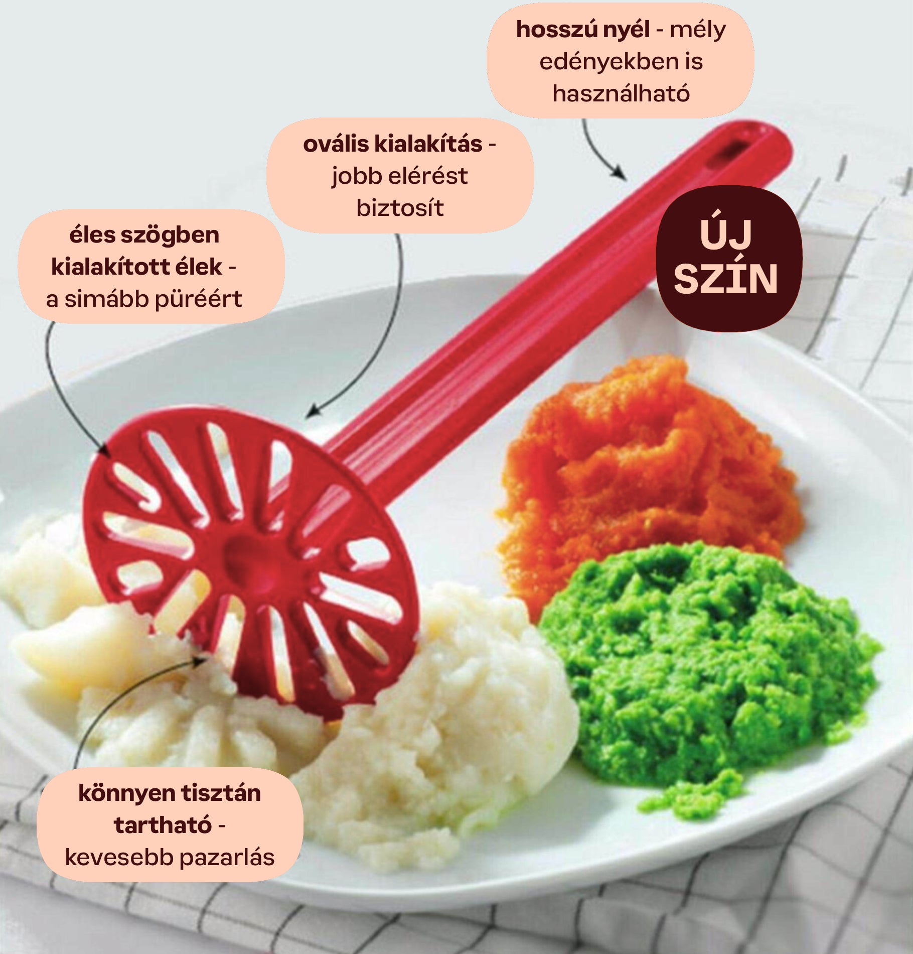 - könnyű vele a döngölés, hosszú nyelének köszönhetően mély edényekkel is használható