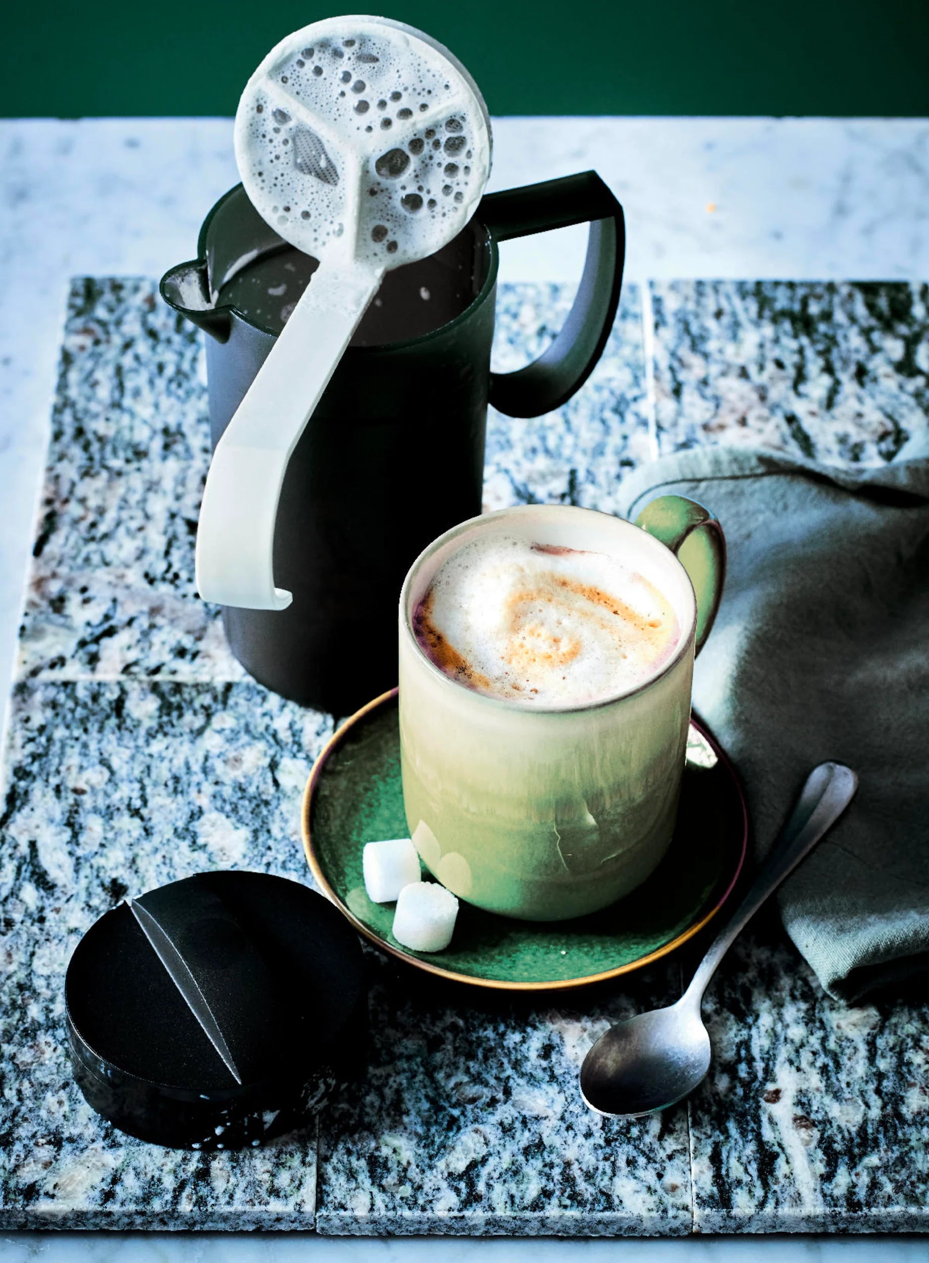 • Fontos: Hagyd állni az elkészült tejhabot 1 percig, hogy megszilárduljon. Ezután öntsd ki a kanállal a tejhabot a csészé(k)be.