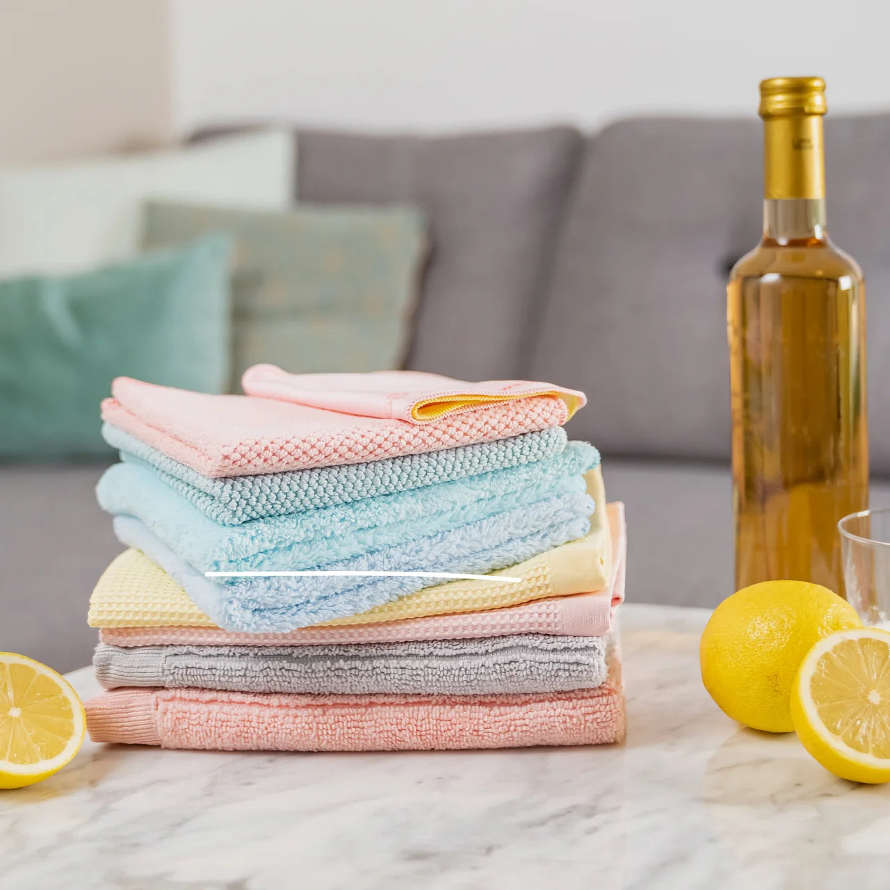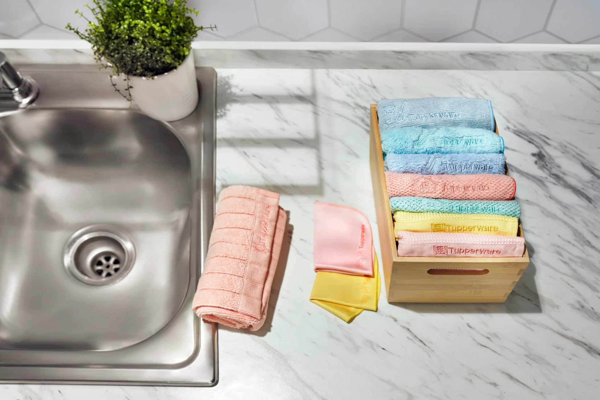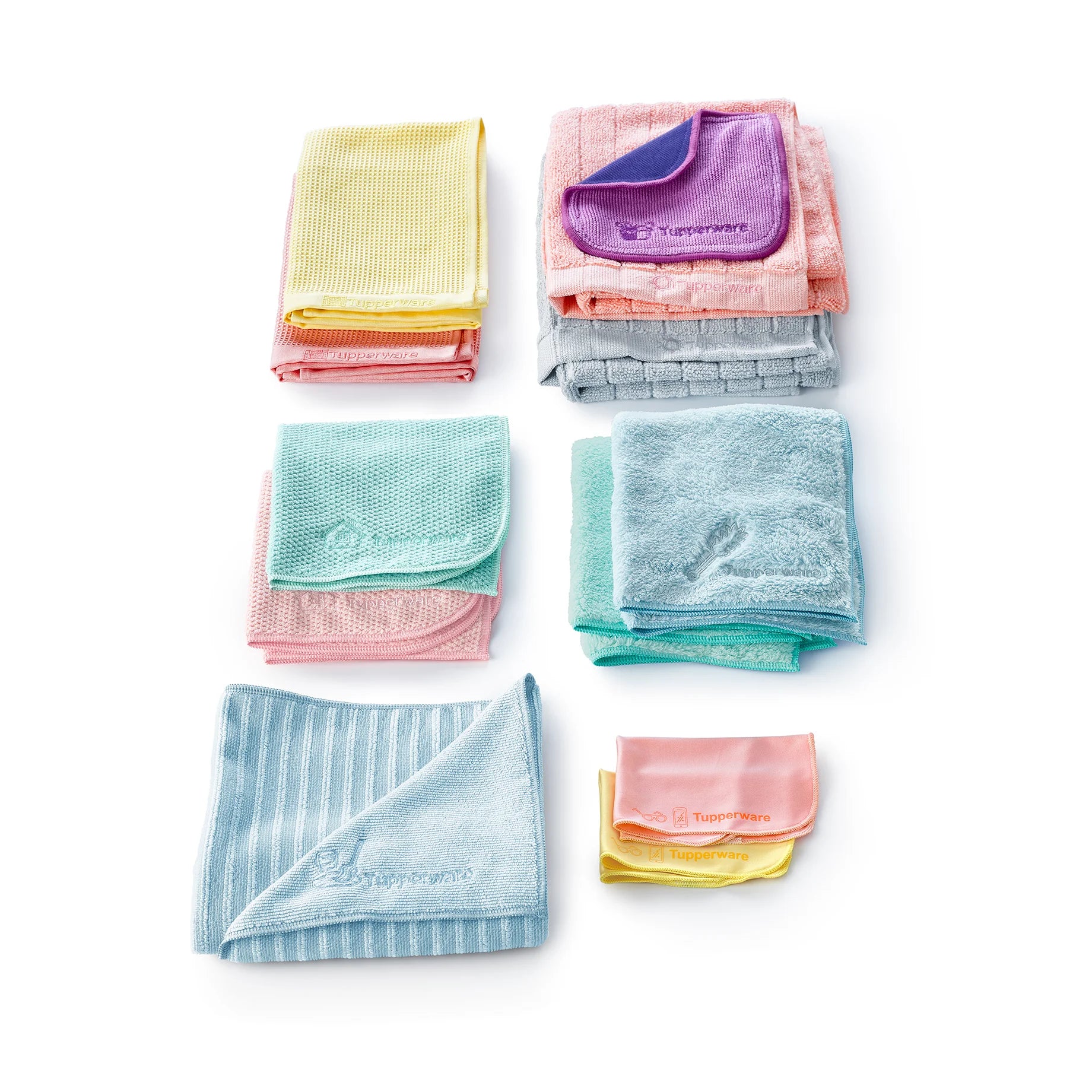 A Tupperware Mikroszálas Kendők újrahasznosított anyagokból készültek. A Tupperware találékony tervezése 80% újrahasznosított poliészter anyagokat kombinál 20% új poliamiddal (a poliészter rész előállításához már meglévő újrahasznosított poliésztert használtak fel). Minden törlőkendő a kollekciónkban színes, tartós, erős és sokoldalú.