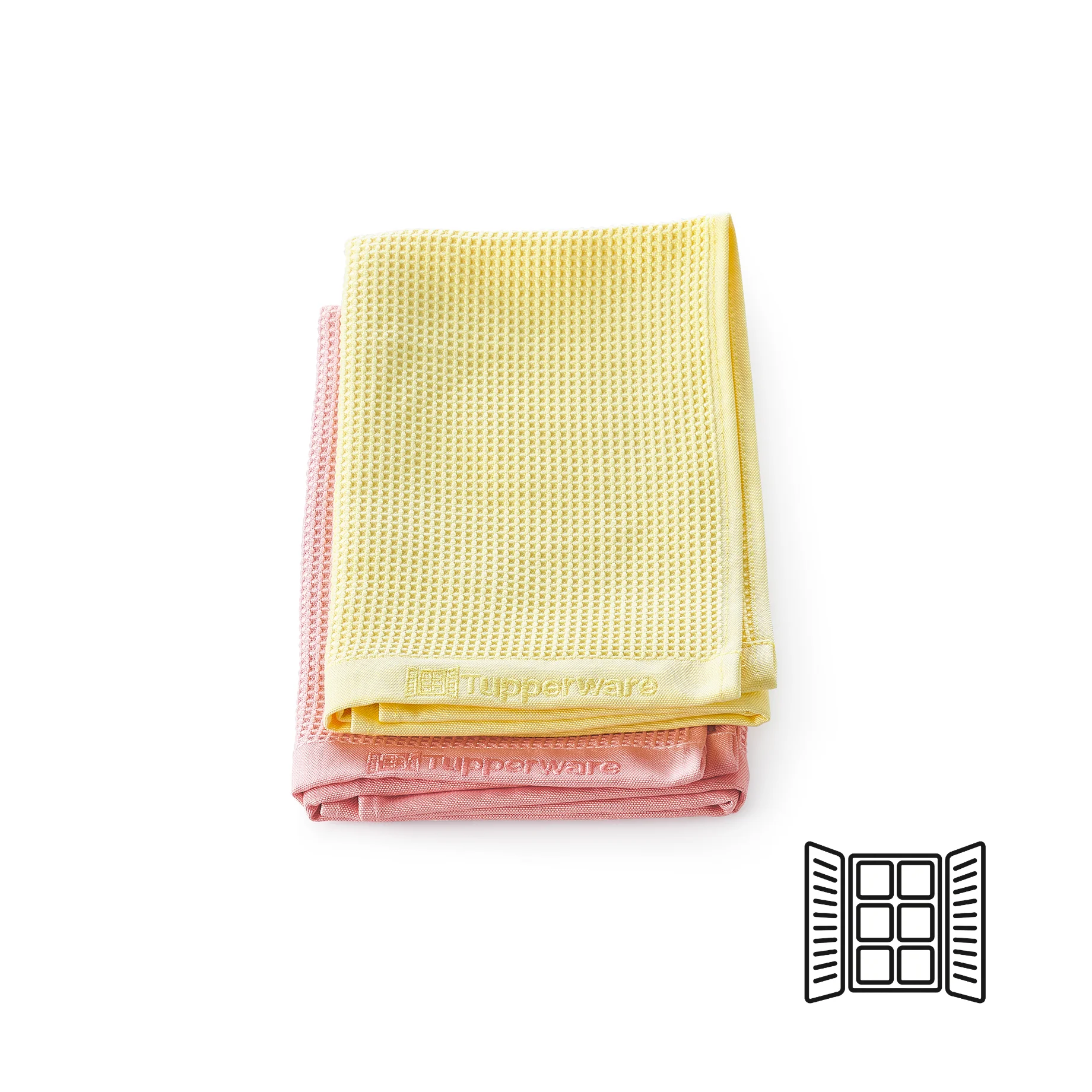A Tupperware Mikroszálas Kendők újrahasznosított anyagokból készültek. A Tupperware találékony tervezése 80% újrahasznosított poliészter anyagokat kombinál 20% új poliamiddal (a poliészter rész előállításához már meglévő újrahasznosított poliésztert használtak fel). Minden törlőkendő a kollekciónkban színes, tartós, erős és sokoldalú.