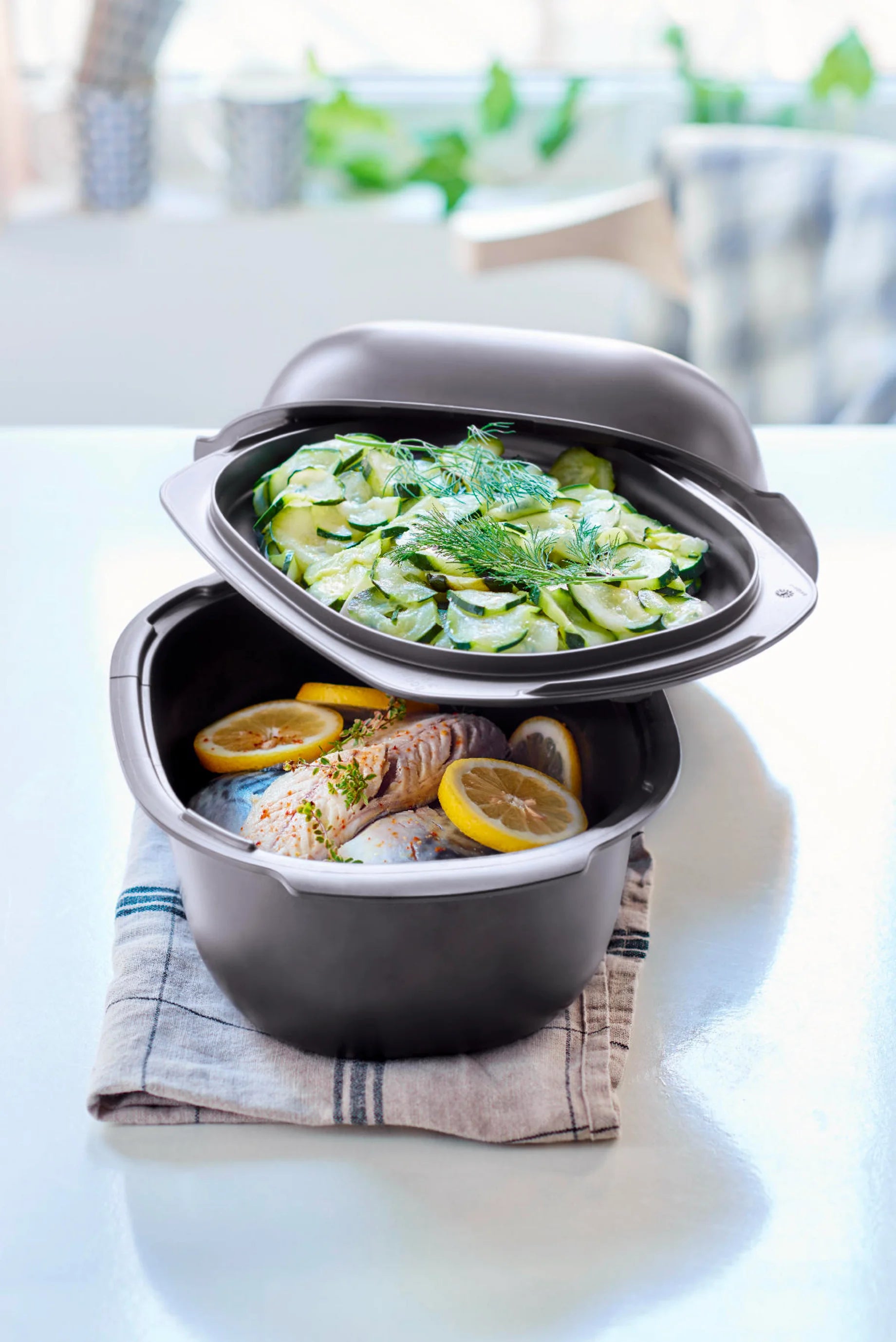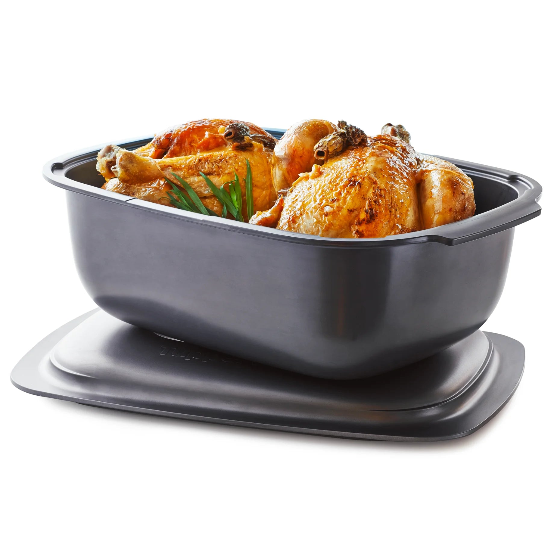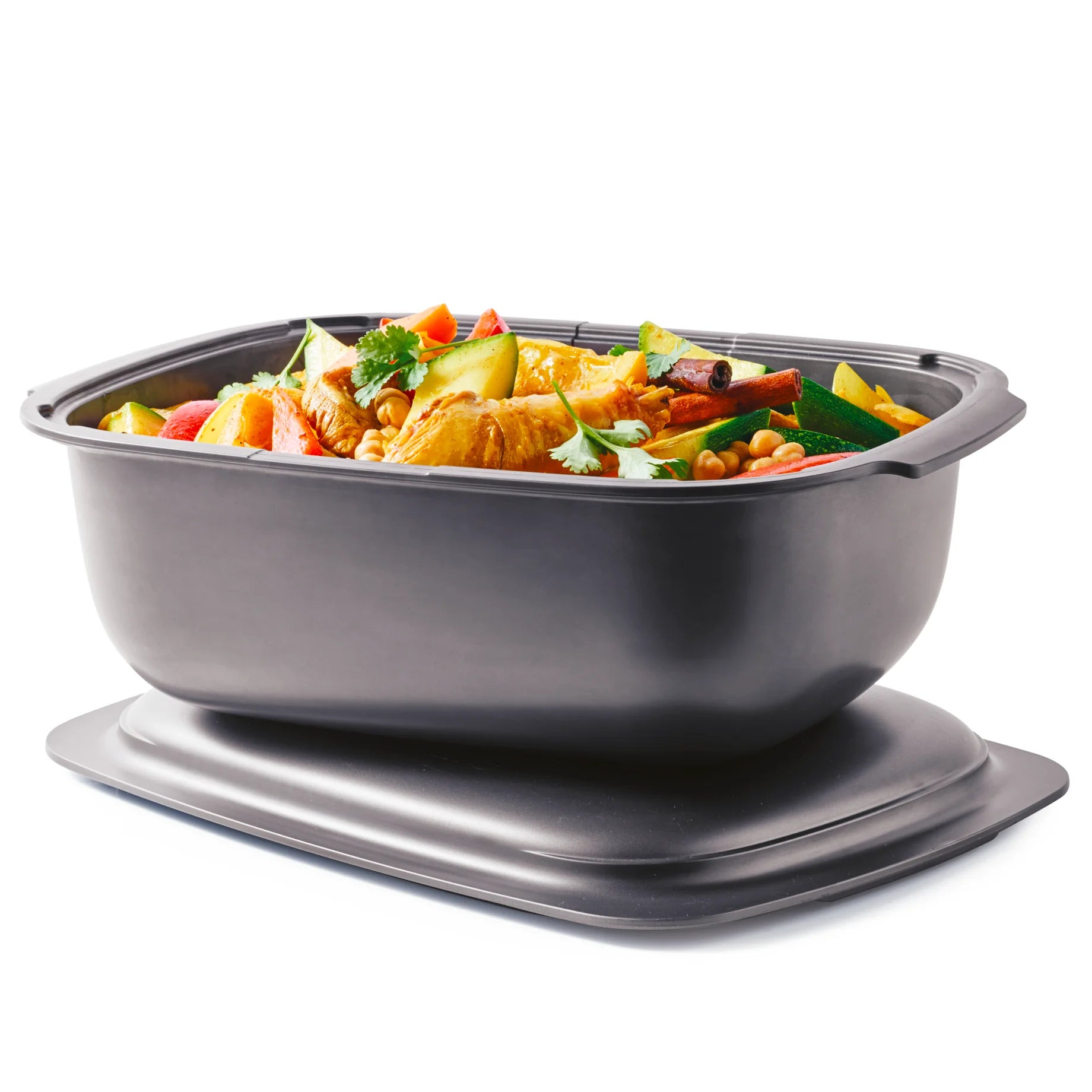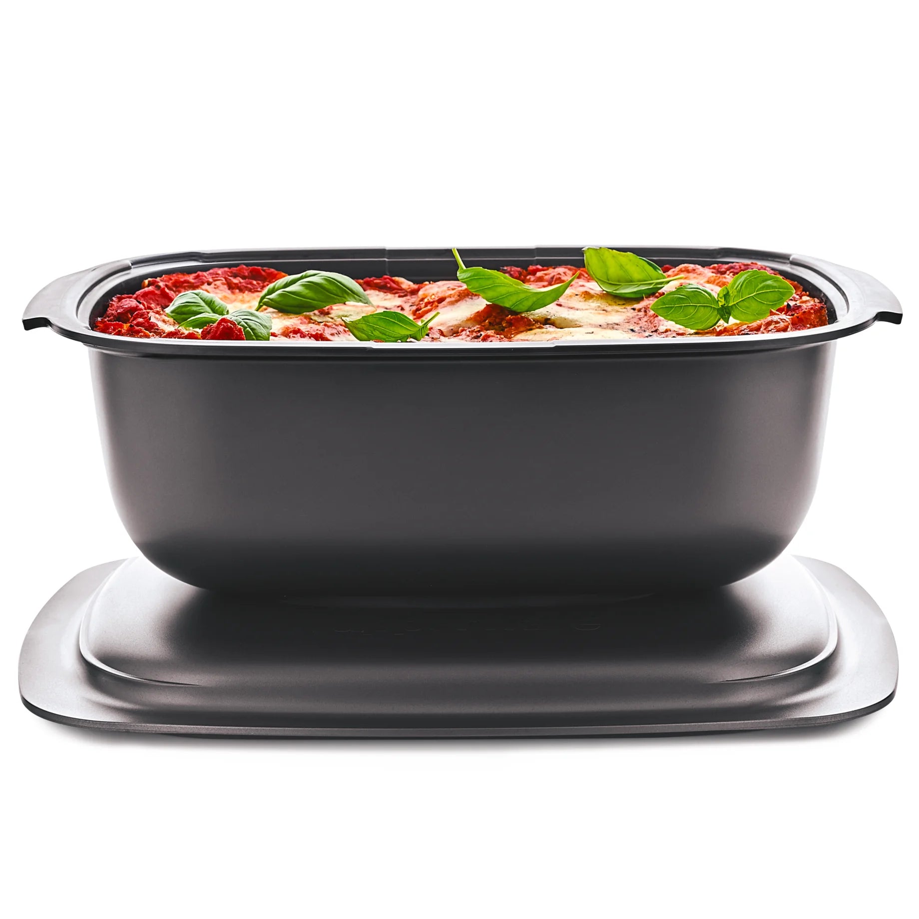 A Tupperware innovatív UltraPro sütőtálja megváltoztatja azt, amit a konyhában lehetségesnek gondolsz. Az UltraPro nemcsak sütőben biztonságos, hanem mikrohullámú sütőben, hűtőszekrényben és fagyasztóban is. Mi több? Az UltraPro gyönyörűen mutat az asztalon is, mint szervírozó edény. Időt spórolhatsz ezzel a fantasztikus sütőtállal történő tandem főzéssel: kezdd a mikrohullámú sütőben, majd süsd aranybarnára a sütőben. Tökéletes sült zöldségekhez, ínycsiklandó gyümölcsös süteményekhez és még sok más dologhoz is.