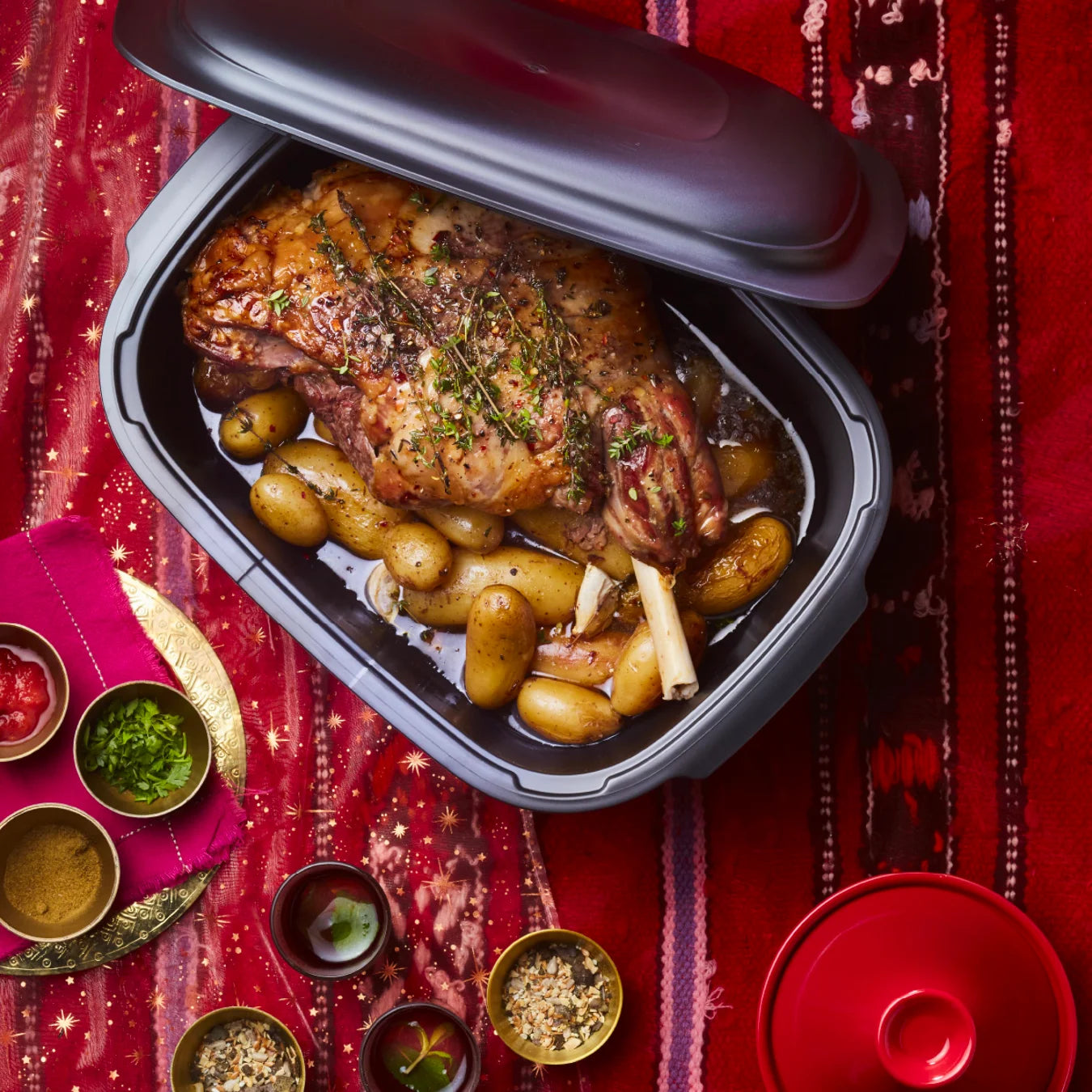 - 5,7L és 3,3L-es alj együtt, 1,2-es tetővel: Szeretnél egy sültet, libát vagy pulykát készíteni, vagy egyszerűen csak egy nagyobb adag finom levest? Nagyobb mennyiségű húsok mellett ajánljuk még pl. zöldségek elkészítéséhez. Kacsasütésénél a 3,3L-as aljat használhatjuk az 5,7L-es fedőjeként.