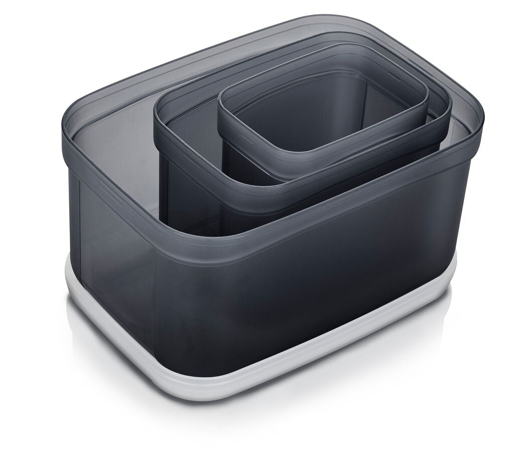 A billenős tetővel ellátott tárolók könnyen nyithatóak, igazán praktikus edények. Átlátszó teteján keresztül minden látható...
