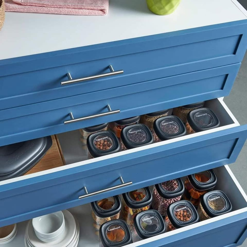 - Ideális gabonafélékhez, rizshez, bulgurhoz, rövidebb tésztákhoz, cukor vagy keksz tárolásához. Továbbá alkalmas magvak, csokidarabok, mályvacukor, chiamag, diófélék, őrölt vagy egész fűszerek tárolásához is.