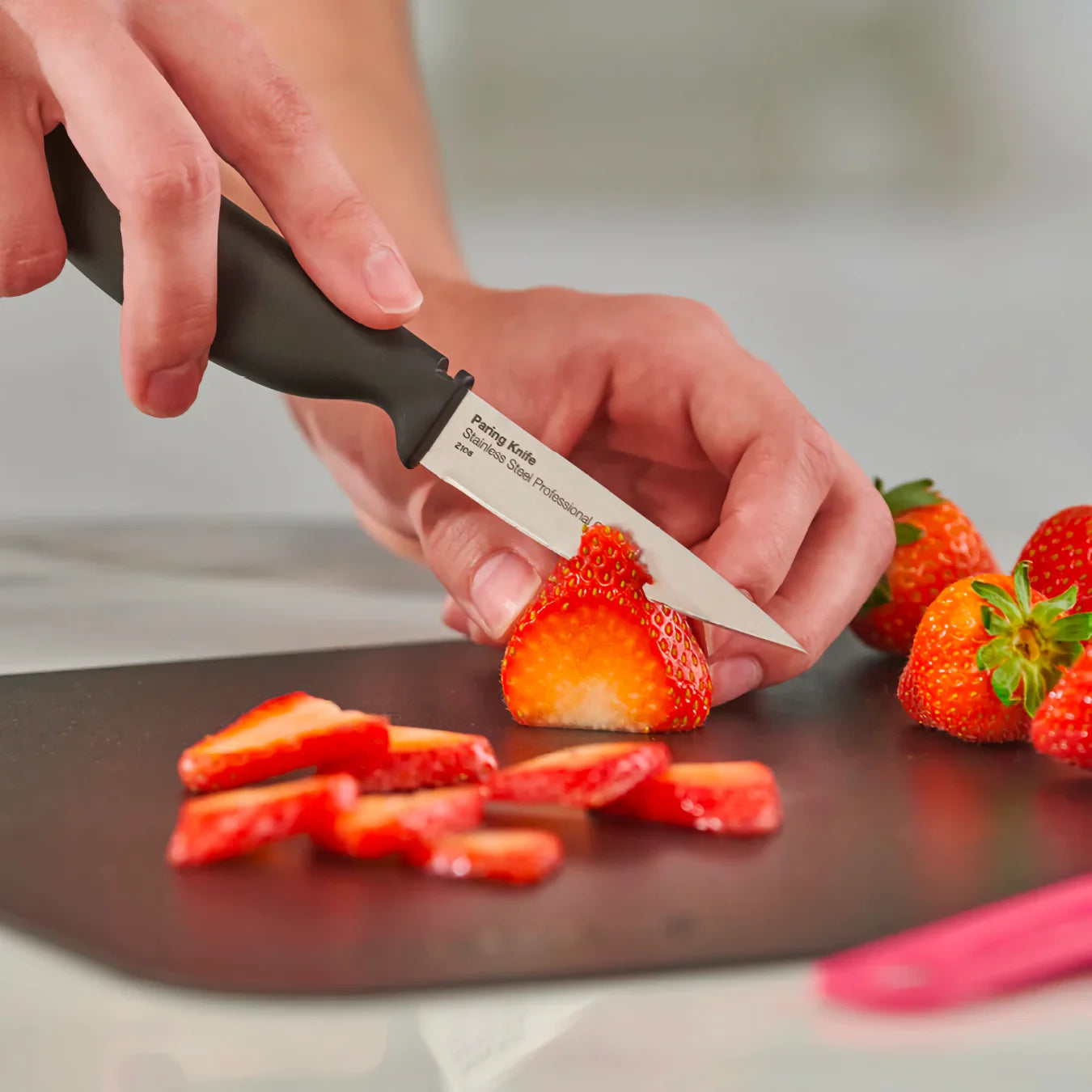 tökéletes hámozáshoz, zöldségek, gyümölcsök feldarabolásához, vágásához, úgy mint pl. körte, alma, kivi vagy akár gyümölcssalátákhoz, desszertekhez, hagymák, fokhagyma hámozásához. Ezzel a késsel akár készíthetsz vonzó díszeket eperből vagy citrusfélékből.