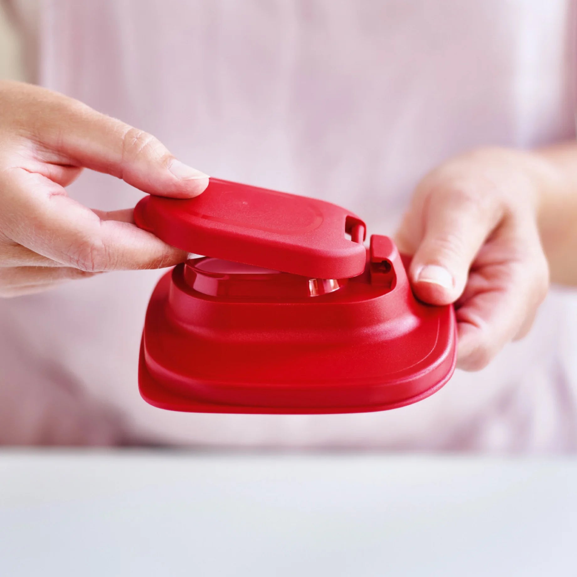 • A fedél cseppmentesen záródik, így az öntőedény könnyedén állva szállítható, és kültéri használatkor sem kerülhetnek be rovarok.