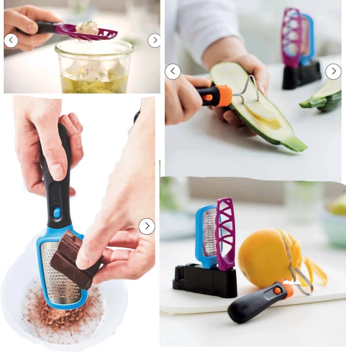 Csuoa Klikk okos kiegészítő segítségével könnyedén reszelhetünk, keverhetünk, magozhatunk. Praktikus kiegészítője lehet a csupa klikk hámozó szettnek, de önállóan is használható a konyhában!