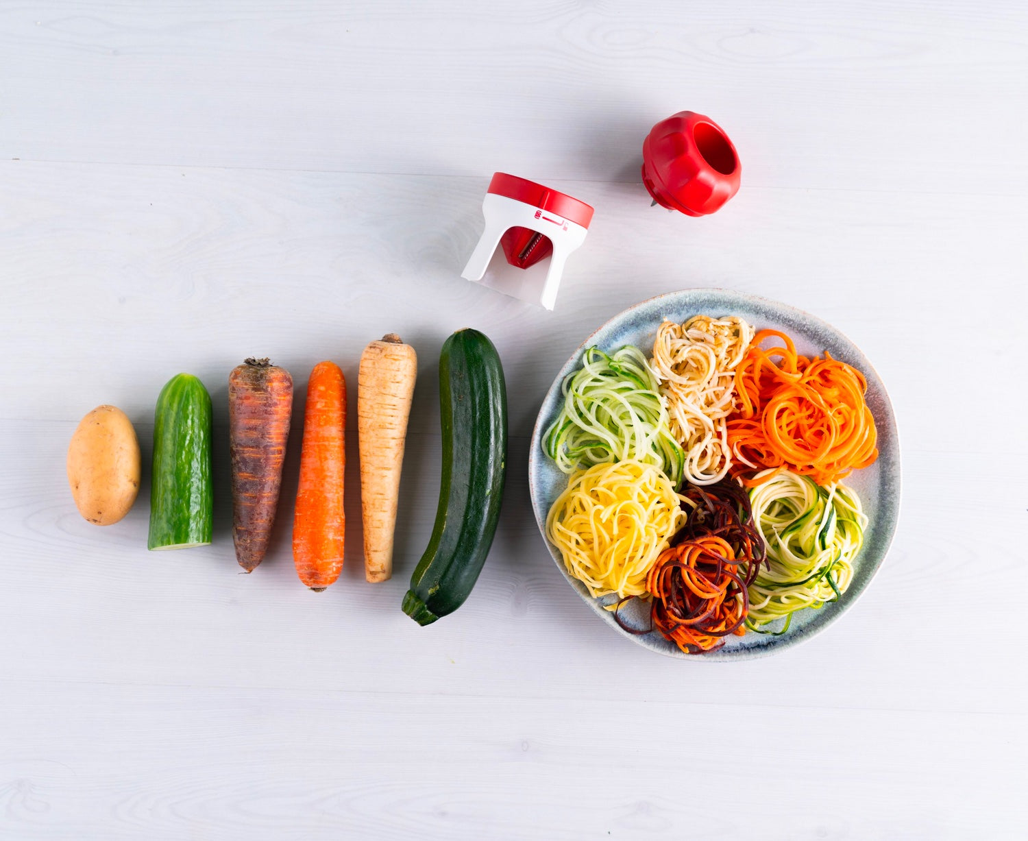 A Spirálvágó kifejezetten egy-két személyes háztartásoknak, azaz kisebb adagokhoz ideális. Emellett csak kevés helyet foglal el a konyhában, mérete összemérhető egy italpoharéhoz.