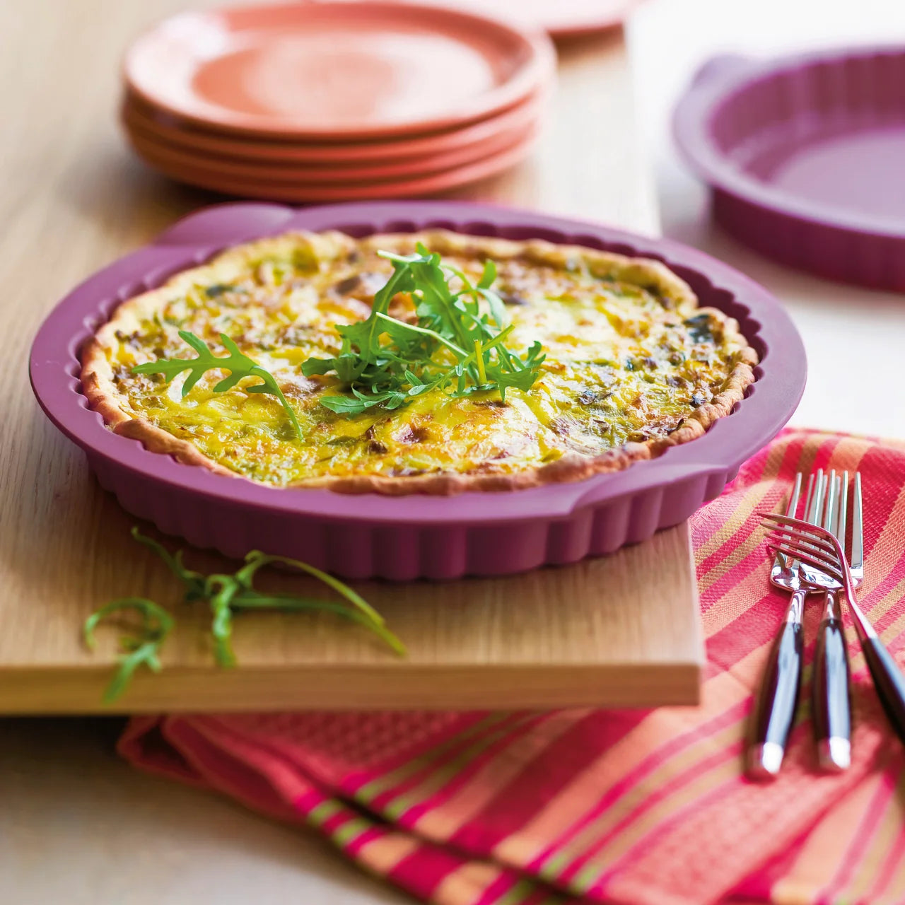 Süss hagyományos pitéket, édes vagy sós quiche-t vagy pizzát a mikrohullámú vagy hagyományos sütöben.